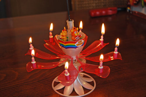 が点いてBirthdaySongが流れ のちに8本のロウソクに点火され 花びらがゆっくり開くスグレモノ